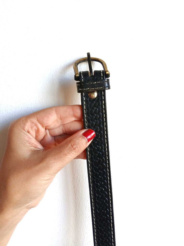 Cinturón vintage de piel de color negro y hebilla dorada.