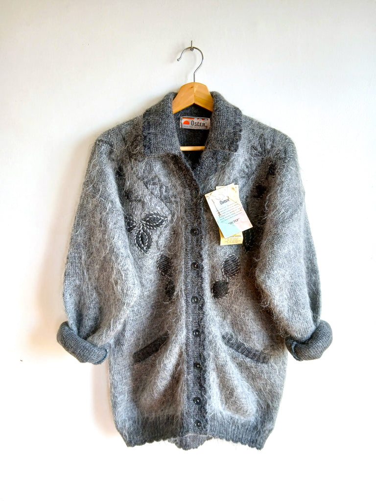 Chaqueta vintage nueva a estrenar con etiqueta de la marca Oster de color gris con flores bordadas, botones originales y bolsillos.