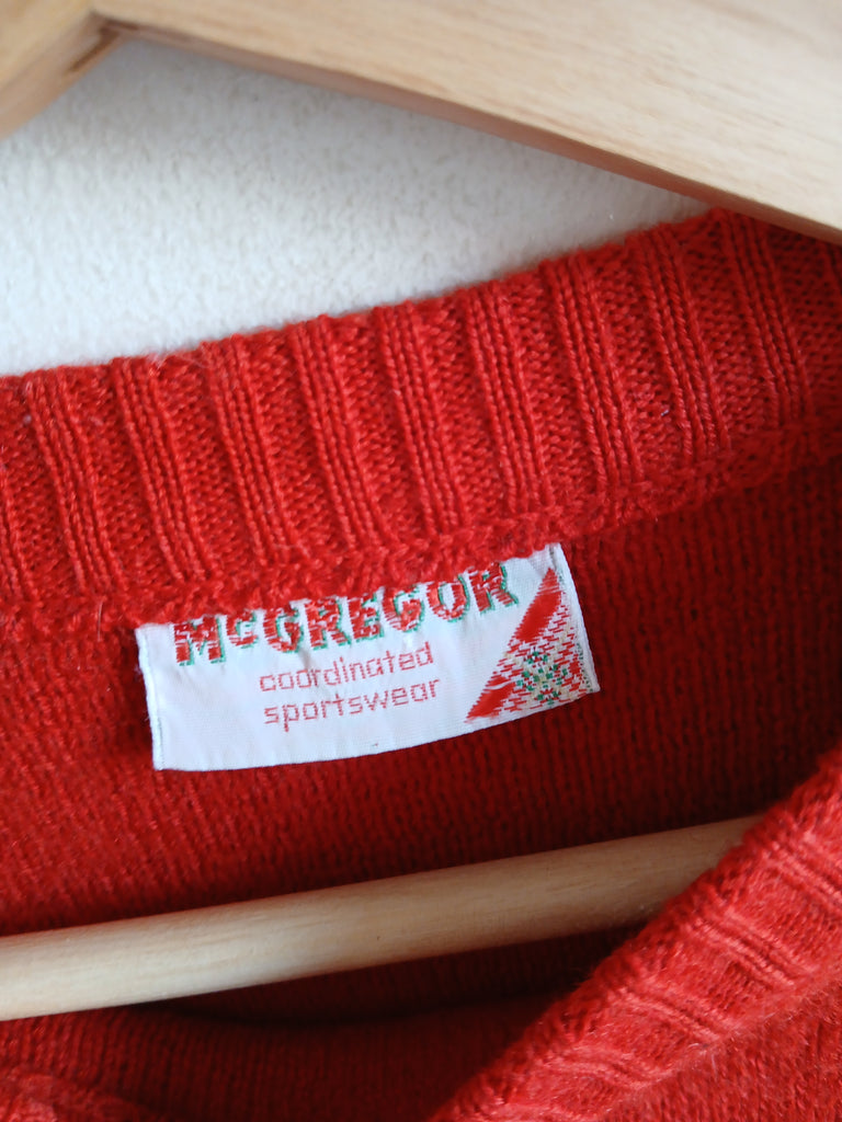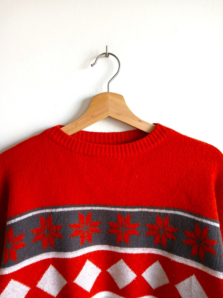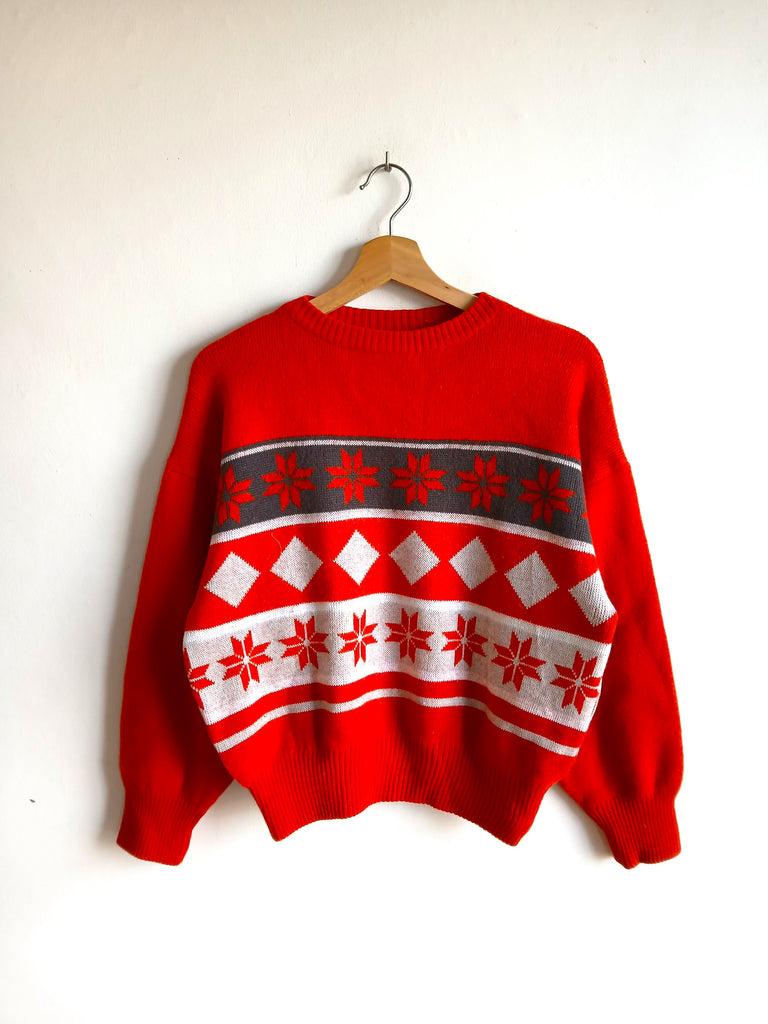 Jersey vintage de punto de color rojo con diseño de cenefas.