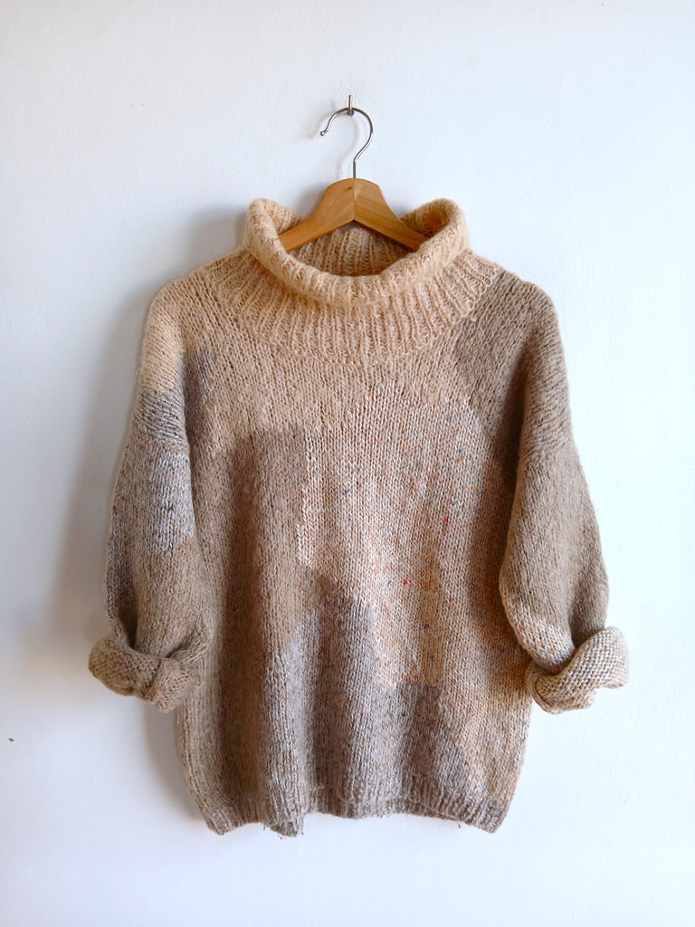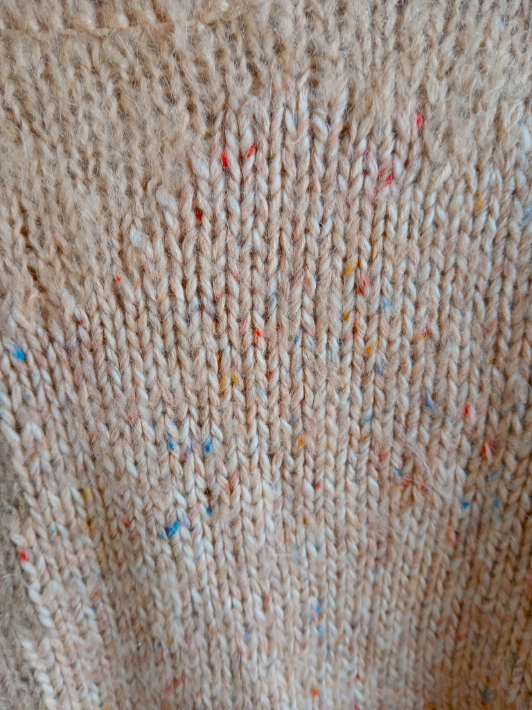 Jersey vintage hecho a mano de color beige y cuello vuelto.