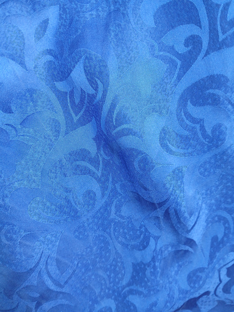 Camisa vintage de color azul con cuello  y flores satinadas.