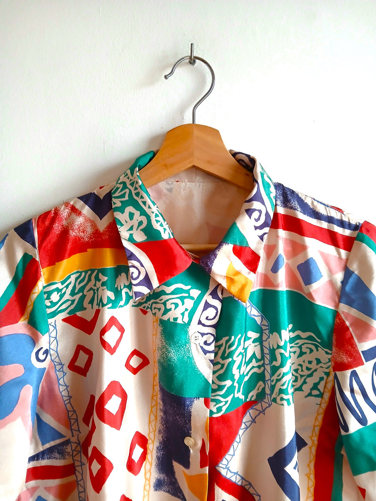 Camisa vintage hecha a mano con estampado crazy de colores.