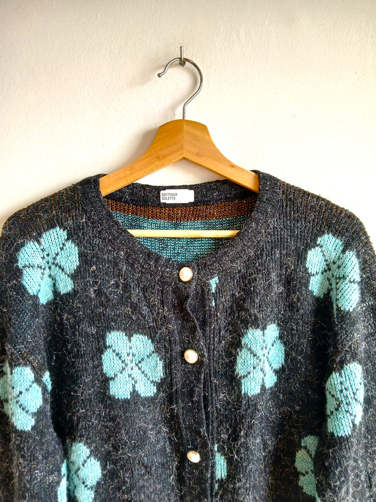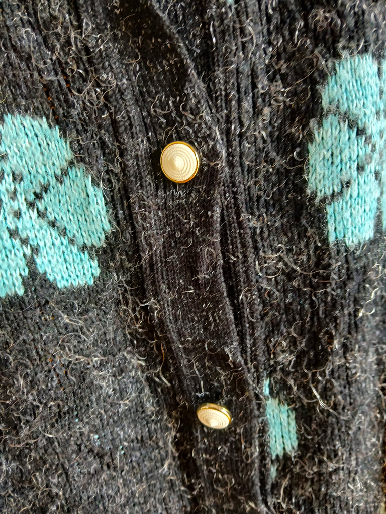 Chaqueta vintage de color negro con diseño de flores y botones originales. Made in France.