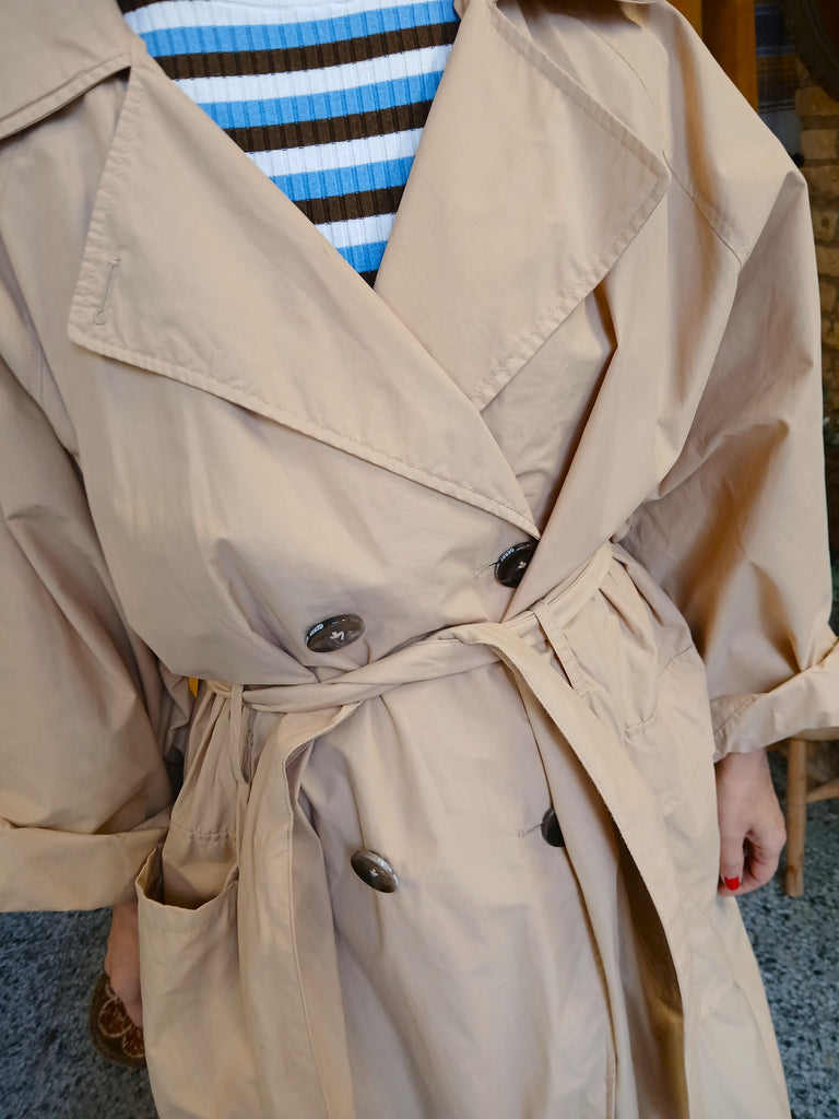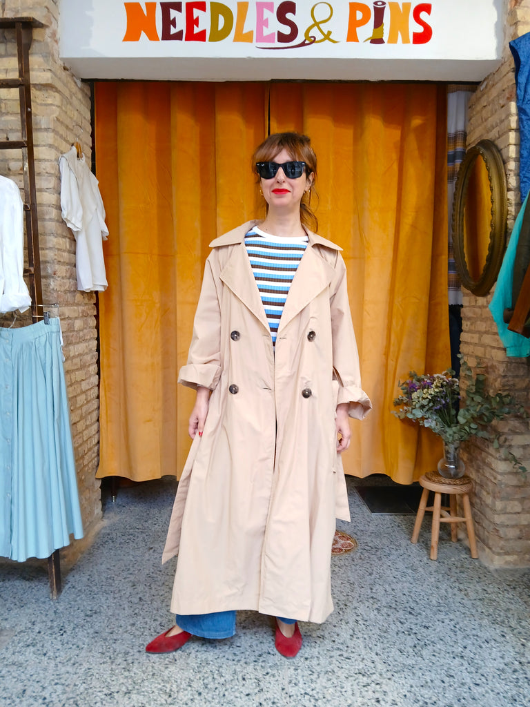 Gabardina vintage de Gerry Weber de color beige con botones originales, bolsillos y cinturón.
